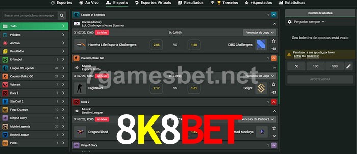 A aposta 8K8Bet oferece aos jogadores a experiência mais conveniente de apostas em eSports!